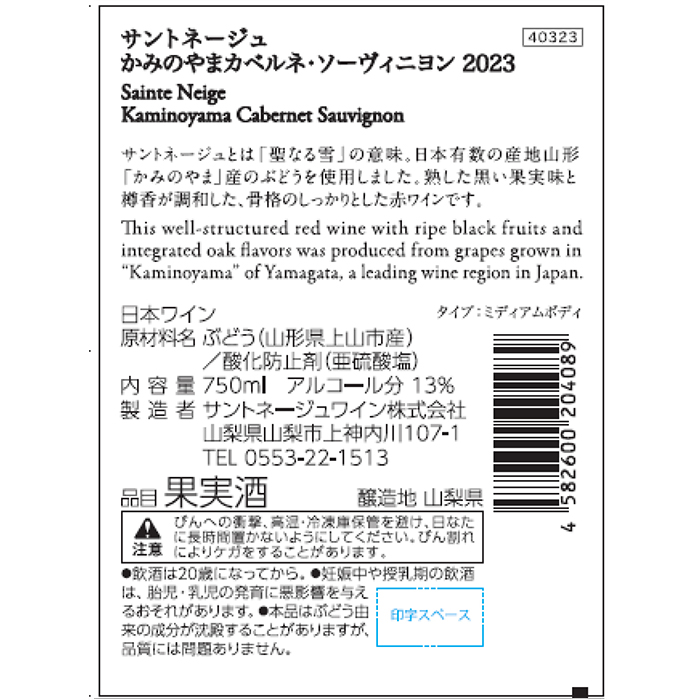 | ぶどう(山形県上山市産カベルネ・ソーヴィニヨン)/酸化防止剤(亜硫酸塩) |