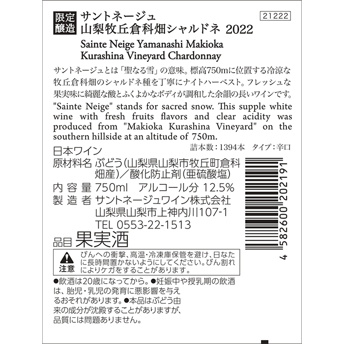 | ぶどう(山梨県山梨市牧丘町倉科畑産シャルドネ)/酸化防止剤(亜硫酸塩) |