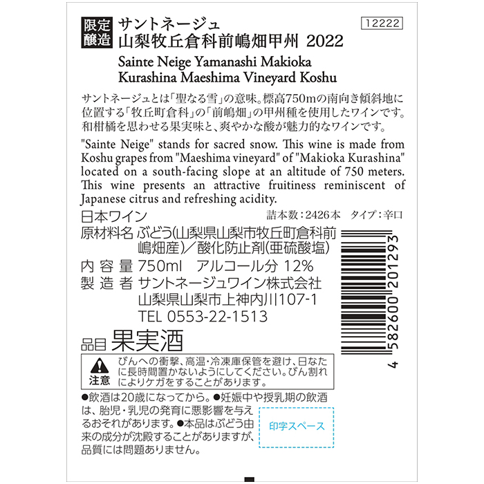 | ぶどう(山梨県山梨市牧丘町倉科前嶋畑産甲州)/酸化防止剤(亜硫酸塩) |