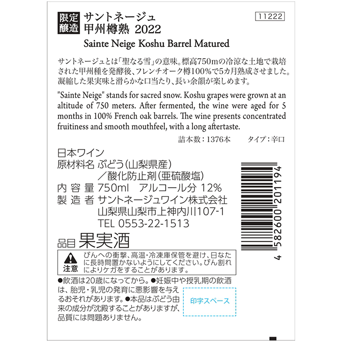 | ぶどう(山梨県産甲州種)/酸化防止剤(亜硫酸塩) |
