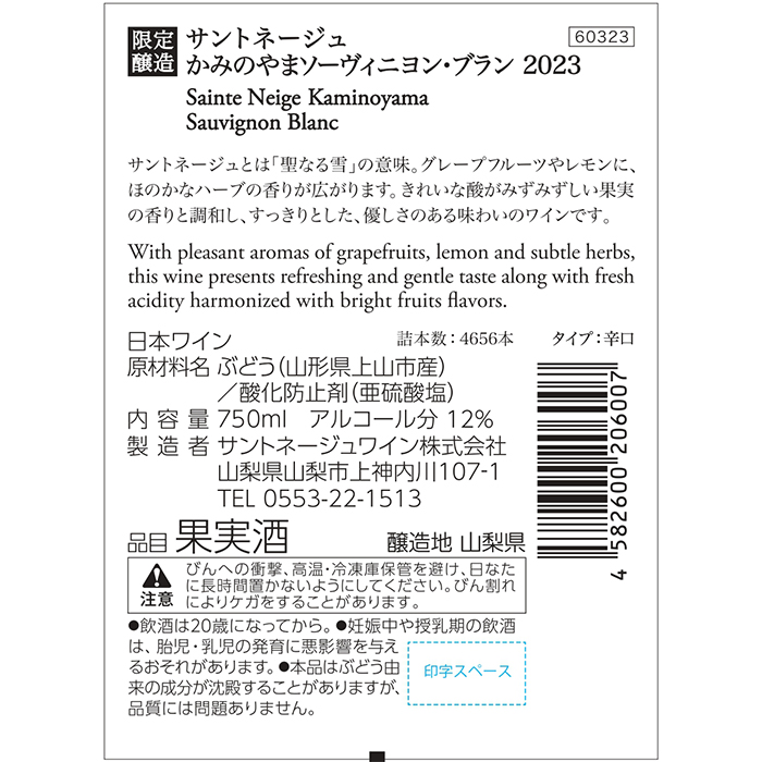 | ぶどう(山形県上山市産ソーヴィニヨン・ブラン)/酸化防止剤(亜硫酸塩) |
