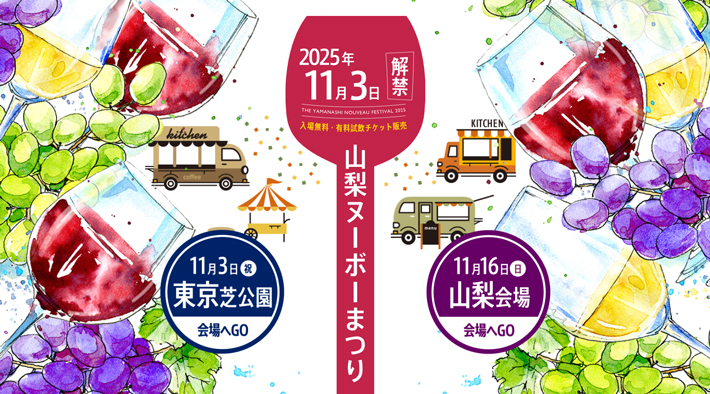2025年11月3日(金・祝)、山梨県ワイン酒造組合主催の「山梨ヌーボーまつり」が開催されます。