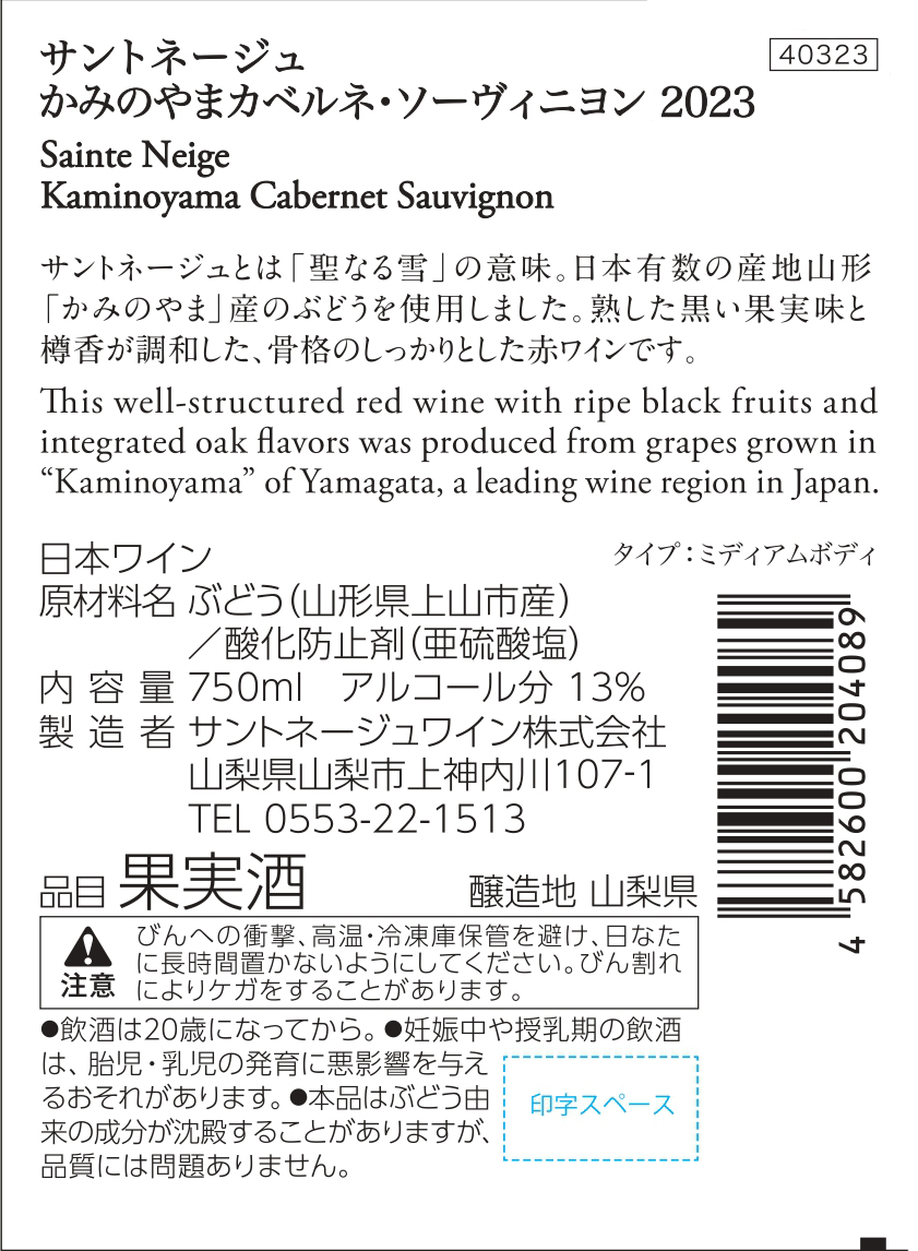 | 商品名 | かみのやまカベルネ・ソーヴィニヨン |