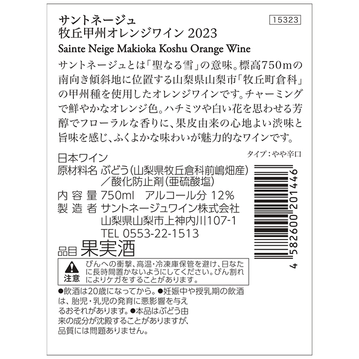 | 商品名 | 牧丘甲州オレンジワイン |