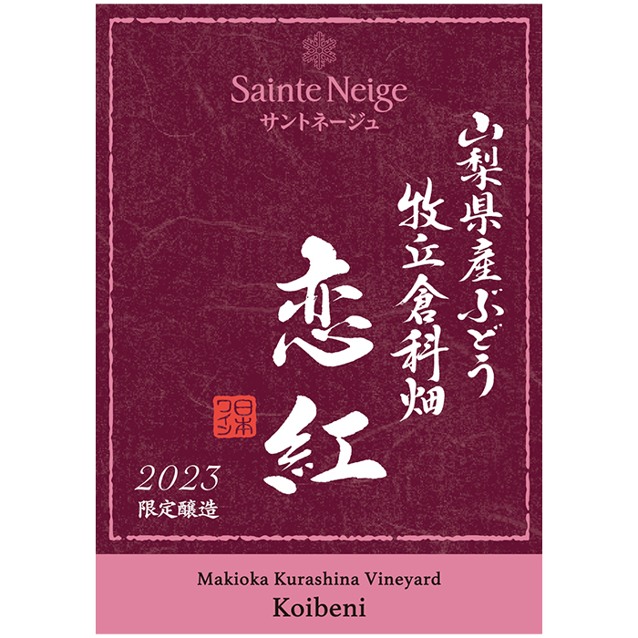 「恋紅(こいべに)」は、サントネージュワイン株式会社が育成・登録したワイン用ブドウ品種で「メルロ」と「マルベック」の交配により誕生しました。1986年に初めて交雑を行い、2003年9月30日に出願、2007年1月22日に品種登録されています。「メルロ」と比較して甘味が高く、「マルベック」と比較して果梗が短く種子が多いことなどから、区別性が認められています。