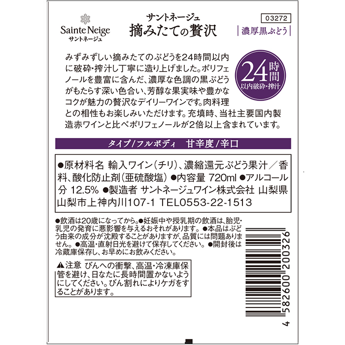 | 輸入ワイン、濃縮還元ぶどう果汁(外国産)/香料、酸化防止剤(亜硫酸塩) |